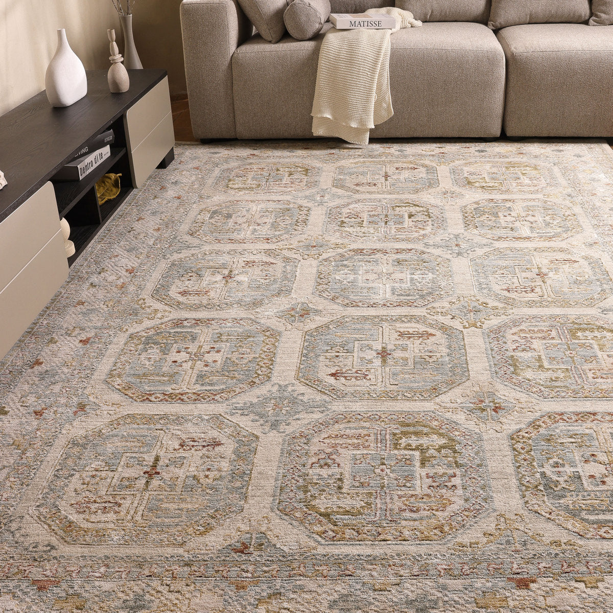 קולקציית קובלסטון שואבת השראה מתהליכים טבעיים של זמן ושחיקה, היוצרים שכבות של גוונים, עומק והרמוניה. כשמה, הקולקציה מהדהדת את התחושה הרכה של חלוקי נחל שנשחקו על ידי זרימת המים במשך שנים ומתרגמת אותה למראה מלנג' טבעי ועשיר. הדגמים מבוססים על מוטיבים קלאסיים ואוריינטליים בפרשנות מעודנת, עם גימור המייצר מראה וינטאג’ אלגנטי ועל-זמני. פלטת הצבעים הרכה שמנת, כחול ואבן מאפשרת השתלבות טבעית במגוון רחב של סגנונות עיצוב, מקלאסי וכפרי ועד מודרני רגוע. השטיחים מוסיפים נוכחות נעימה וחמימה לחלל מבלי להשתלט עליו, ומתאימים לסלון, פינת אוכל וחדרי שינה. החומרים האיכותיים מבטיחים עמידות גבוהה, תחזוקה נוחה ומראה שנשמר לאורך זמן